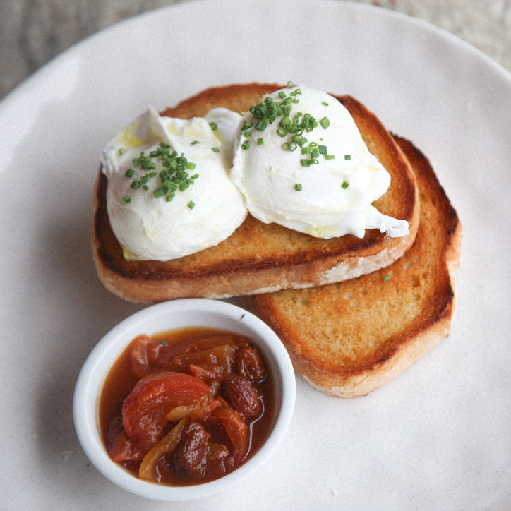 Two local free range eggs (made any way you like) on sourdough toast, with house made tomato chutney. (GFO)